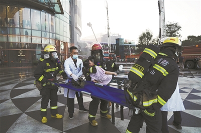 “119”消防指挥中心接到报警后,一键式调派城市大型综合体灭火救援编队,接到调派指令的各类救援力量闻警即动。