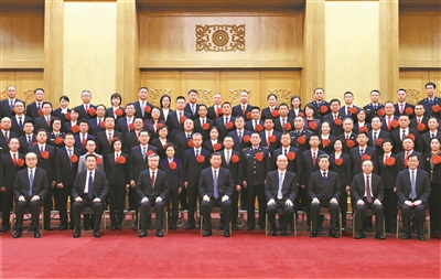 上午10时30分,习近平等来到人民大会堂东大厅,全场响起热烈掌声。习近平等向代表们挥手致意,同大家亲切交流并合影留念。