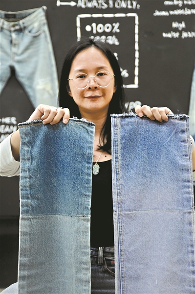 卢惠森告诉记者,牛仔面料是一种梭织面料,由经纱和纬纱相交而成,看似粗犷,实则精细,经纬密度计算以0.5毫米为单位,耐磨结实的面料结构也给牛仔裤生命力多层次开发带来了可能。