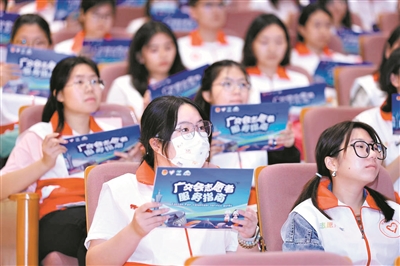 广州日报讯 (全媒体记者廖靖文摄影报道)4月6日下午,“第135届广交会志愿者培训暨上岗誓师”活动在广州海珠琶洲开展。本届广交会将于4月15日在海珠拉开序幕,海珠区团委设立了100个志愿服务岗位,以4个“新时代驿站”为据点,联动51支在穗高校志愿服务团队,精心遴选3000名青年志愿者上岗服务,为国内外客商提供语言翻译、场馆指引、办证咨询、交通疏导、应急医疗、旅游宣传等志愿服务。