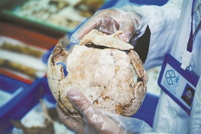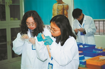 李法军的学生在实验室里拼合近年发现的一批古人骨材料。