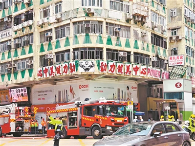 图为涉事大厦,起火原因仍在调查中。图/广州日报港澳站记者石忠情