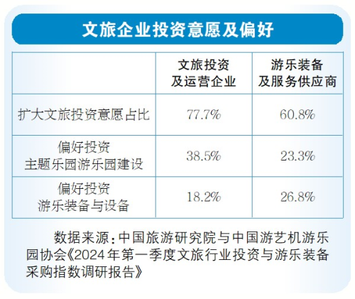 游客需求在变化,文旅投资也应时而变。中国旅游研究院和中国游艺机游乐园协会的《2024年第一季度文旅行业投资与游乐装备采购指数调研报告》指出,文旅企业的投资经营整体向好,面向2024年的投资预期整体乐观,游乐装备以及服务采购市场稳步扩容。