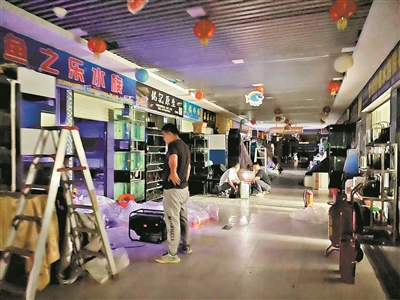 芳村花鸟鱼虫新世界有工艺馆、水族馆、红木馆、宠物馆、雀鸟馆等特色场馆。重灾区在A区的工艺馆及二楼的广东东西部扶贫协作产品交易市场,水族馆、红木馆因与其连片,也受到波及。记者上午走访看到,市场周边部分路段被封闭,整个A区围蔽,内部停电,只有水族馆允许档主在登记后入内转移货品、减少损失。