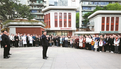 九龙坡区谢家湾街道民主村社区是一个老小区,2022年初启动更新改造项目并纳入全国有关试点。习近平来到这里,察看小区改造和便民服务情况,听取提升基层治理效能、为基层减负情况介绍。他还走进社区食堂,同正在就餐的群众亲切交流,鼓励社区食堂实现可持续发展。习近平指出,老旧小区改造是城市更新的一个重点,也是一项民生工程,既要保留历史记忆和特色风貌,又要解决居民关切的实际问题。要总结推广这方面的成功经验,更好惠及广大社区居民。