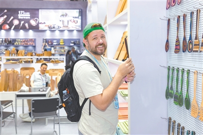 “竹,我认为代表着中国人的一种高雅与精神气。”在餐厨用具区域里的“味老大”展区,年轻的浙江味老大工贸有限公司总经理张帅向记者透露,敢于深耕专营竹制品品类的很少,公司的优势是研发能力强。记者留意到,今年“味老大”带来了色彩绚丽的木铲勺系列产品,原材取自彩虹木,样式多样且能支持按照客户需求定制。张帅拿起一只勺子轻抚边缘处表示,“你看这里的加工处理非常成熟,看似有原木粗糙感,但触摸起来非常顺滑。其实竹材料作为国风的一种文化底蕴般的存在,可以变化出很多花样。”