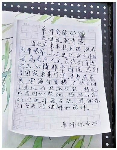 刘国连说,华师的同学们非常可爱,一举一动也常常温暖着他。同学们很配合刘国连的工作,也很喜欢他,信任他。有一次,一位同学过生日还带了自己的生日蛋糕给刘国连吃;还有一位同学,母亲生病,他离开学校回家前,还抱着刘国连哭了。同学们的信任,让刘国连很感动。说起这些点点滴滴,他的脸上又露出了标志性的笑容。正是为了向华师的师生表达感谢和敬意,刘国连才特地手写了那封信。