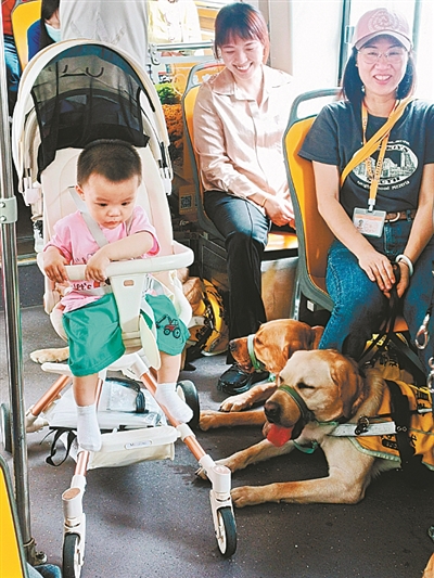 每年4月的最后一个星期三是国际导盲犬日。今年,一汽巴士新增133路线为“导盲犬主题公交线”,并开放2100多辆公交车给训练中的导盲犬上车学习,并为导盲犬和视障人士提供无障碍服务,保障视障人士无忧出行。