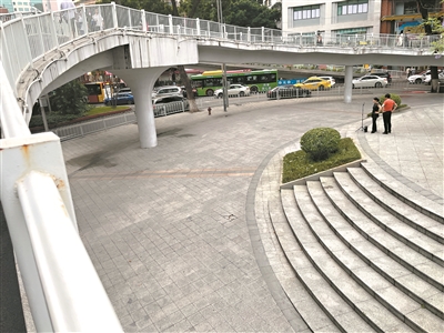 中山大道、五山路路口的人行天桥底部空间与市民活动广场“连片”,方便民众来此活动。