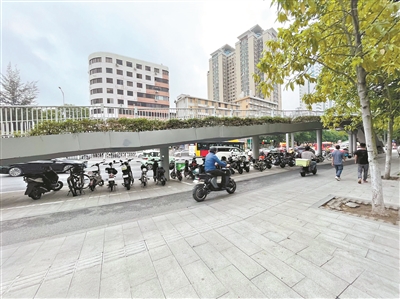 中山大道华师附中门口人行天桥下规划了非机动车停放区。