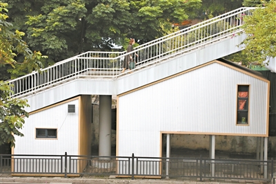 记者现场看到,经过改造后的桥下空间颜色以淡黄色为主,天桥西侧的桥下空间打造了非机动车辆停放区域、宣传栏以及市民活动休息区域,在该区域内配有不锈钢制作的座椅和桌面供市民休息放松;而在天桥东侧的桥下空间,除了提供更为宽敞的市民活动休息区域外,还打造了环卫、绿化工作人员的休息生活区域,在为人行天桥提供更加宜人的街道风貌的同时,也为环卫、绿化工作人员提供了更好的休息活动空间。