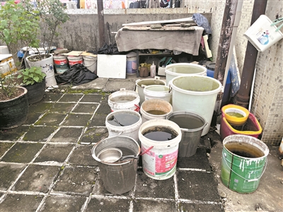 下午2时许,记者在王姨指引下来到该小区某楼栋的楼顶天台。这个天台的部分区域已经被人用不锈钢架围了起来,里面种着小番茄和青菜。记者留意到,该天台空间十分开阔,约有上千平方米。地面上摆放着好几个塑料桶,有的桶里面装着雨水,有的桶里则装着施肥用的粪水,上面还有蚊虫飞来飞去。“以前气温不高还不觉得,现在天气越来越热,在家里开窗气味会飘进来,不开窗闷着又难受。”