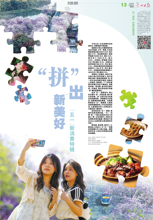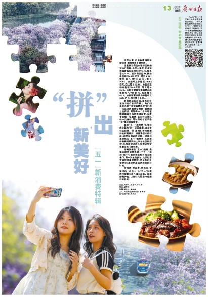 扫二维码 玩游戏赢奖品 Fun乐“五一”,由无数个欢乐消费场景组合而成。广州日报新花城特别设计《Fun乐“五一”,“拼图”大作战》游戏,该游戏为“五一”消费场景拼图闯关模式,共设3关。粉丝在规定时间内将拼图完整拼好,即可通关,进入抽奖页面,解锁我们送出的双人机票、餐券、化妆品等“‘五一’大礼包”。