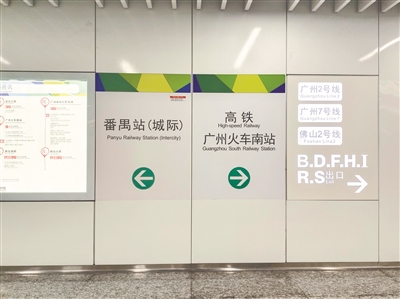地铁广州南站内已增加城际番禺站指示牌。