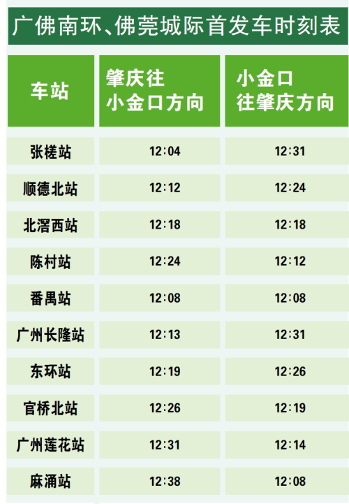 为满足不同旅客的出行需求,“四线”贯通运营后将全面启用“站站停+大站快车”公交化运营模式,执行“肇庆站-小金口站”和“佛山西站-小金口站”交路,平均行车间隔为26分钟。其中,大站快车固定停靠肇庆、鼎湖东、大旺、三水北、佛山西、番禺、广州长隆、东莞西、西平西、松山湖北、常平南、陈江南、西湖东及小金口共14个车站,旅客可根据自身需求灵活安排出行时间。为避免出现上错车、坐过站等情况,旅客请留意所乘列车的停靠站信息。