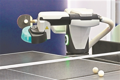 仿人型乒乓球机器人亮相体博会。@人民视觉