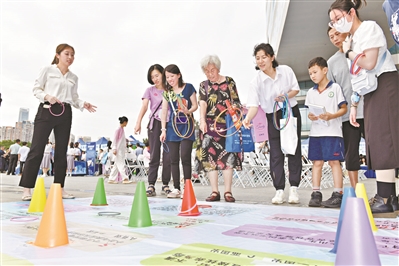 许多展位纷纷开展趣味性十足的普法互动小游戏,大转盘答题、套圈答题、合作书写“法”字,拼图答题……吸引了众多市民和职工热情参与。