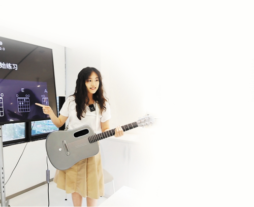 广州日报全媒体记者体验拿火音乐的智能吉他。