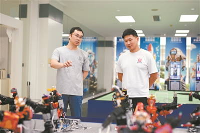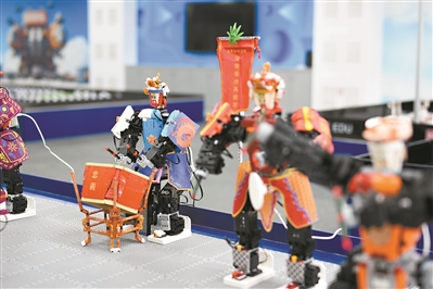 然而,身边小朋友的好奇和兴趣,给了陈锐烽坚持下去的动力。他回忆,机器人还在调试阶段时,前来群宇人工智能基地研学的学生们都会过来围观,他们都对这些画着脸谱的机器人兴趣浓厚。“他们会问哪个是宋江、哪个是时迁,这台机器人又是谁?”陈锐烽告诉记者,正是这些机器人的造型让孩子们因兴趣而产生对传统文化的探索欲。