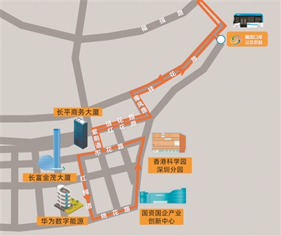 据了解,C22接驳通勤专线首末站设在福田口岸公交总站,途经长平商务大厦、长富金茂大厦东、华为数字能源、国资国企产业创新中心、香港科学园深圳分园,服务时间(工作日)为8:00~9:30和17:30~19:00,发车间隔为5~8分钟,票价1元。该专线采取招呼停车模式,招手即停、按铃即下,若该站点无乘客招手上车、按铃下车,则公交车在此站不停靠。