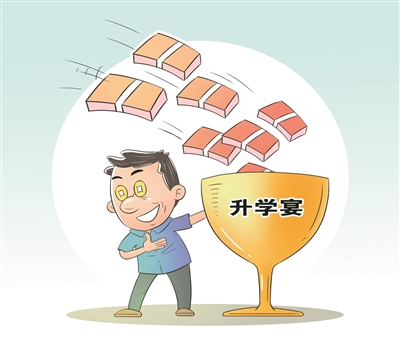 孩子金榜题名是一大乐事,叫上亲朋好友、授业恩师一起庆祝本是人之常情。不过现如今一些“升学宴”“谢师宴”早已超出谢师的范畴,沾染上了“铜臭味”。有的家长讲排场、好面子,大摆宴席、广纳红包,搞得金钱味越来越浓、人情味越来越淡。升学庆贺也好,感念师恩也罢,未必要兴师动众、大操大办,更不能用金钱物化情谊。好好的升学宴非要搞成“铜钱宴”,反倒惹人嫌、招人厌。(付迎红)