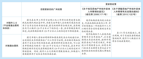 广州限购政策进一步放松。对外籍人士、中国港澳台人士购买120平方米以上面积的住宅,个人购买非居住用房不限购的政策已于上周更新执行。