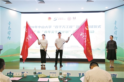 昨日,中山大学“百千万工程”突击队出征仪式暨广东“青年实干家计划”示范项目启动仪式在中山大学举行,本场活动是“百千万工程”突击队出征仪式八场省级示范活动之一。今年暑期,广东1.2万支“百千万工程”突击队整装待发,将有超10万名大中专学生奔赴全省县镇村开展定向服务,为广东高质量发展贡献青春力量。