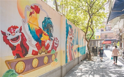 昌华街泮塘五约新都里,墙上绘有广府文化壁画。