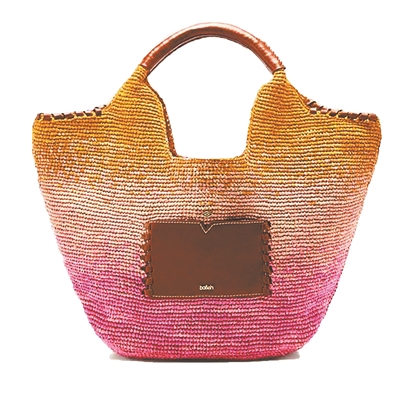 采用拉菲草手工编制的ba&sh的PAMD手提包,夏日海岸胶囊系列,以渐变的日落色调演绎浪漫魅力。