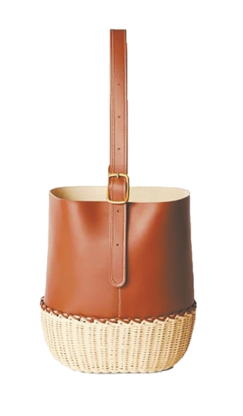 Loro Piana 24春夏度假系列Cedar水桶包,融合柔软牛皮革与手工竹编,以粗缝线无缝连接,匹配可调节皮革肩带和扣环,俏皮精致。