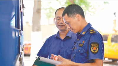 温树勇(前)在进行燃气安全督导检查。