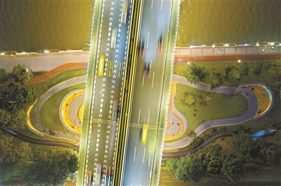 城央绿岛二沙岛体育公园在绿树掩映下的篮球场,灯光洒落,球友们跃起、投篮、击掌,伴随着场外观众的欢呼,汗水与激情在夏夜里交织;北京路千年古道旁,青宫的空中球场上,踢出的足球在绿茵上方划出一道道优美的弧线,如同夜空中的流星划过;广州大桥桥底的乒乓球场内,球台摆列成排,夜晚的暗角、橙黄的灯光,形成明暗对比,一个个白色小球在球桌上快速穿梭,宛如月下横飞的大雪花;海印大桥桥底的一个运动区域,集滑板跑酷功能于一体,滑板爱好者踩板翻腾、疾驰滑行,小孩子在场地上高低起伏的坡道之间奔跑、跳跃、攀爬,尽显运动活力。当然还有城市内大大小小的口袋公园、绿化余地,建设了居民健身区,单双杠、划船椅、转肩轮……各种健身设施简单却齐全。