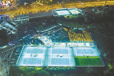 海珠区琶洲村新马路,停车场和草莓园包围的中间地块上建起一座由多块足球场、网球场组成的“拾号体育公园”。