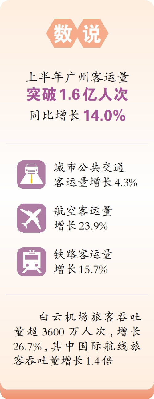这个暑假,出行热度持续攀升。进入7月以来,白云机场呈现“进出两旺”态势,铁路发送旅客数量也屡破纪录。民航铁路“半年报”成绩单亮眼,从交通出行之热可以看到经济发展之质,中国经济的活力在流动中愈加蓬勃。交通通畅,百业俱兴。上半年,广州客运量延续两位数快速增长,突破1.6亿人次,同比增长14.0%。