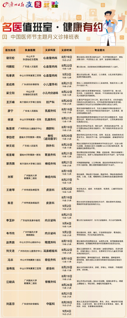 今天是第七个中国医师节,由广州日报新花城客户端、广州日报健康有约、支付宝联合推出的“大湾区名医值班室”公益项目正式启动,以“主流平台+公益义诊”模式,有效扩大优质医疗资源的覆盖范围和咨询效率,让更多基层患者享受到名医的权威健康咨询服务。
