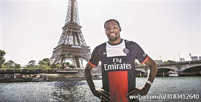 杜兰特身披大巴黎球衣。@巴黎圣日耳曼俱乐部官网
