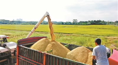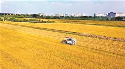 广州日报讯 (全媒体记者马骏 通讯员马驰摄影报道)稻田里一片片金黄,麻涌千亩农田迎来了收获季节。昨日,在麻涌千亩农田耕地恢复一期项目,晚稻收割现场呈现出一派繁忙而喜悦的景象。当天,麻涌镇党委书记谭叙棉带队到该项目现场调研耕地保护和粮食安全工作,强调要严格实行耕地保护制度,深入推进“田长制”,守稳守好耕地保护红线和粮食安全底线。