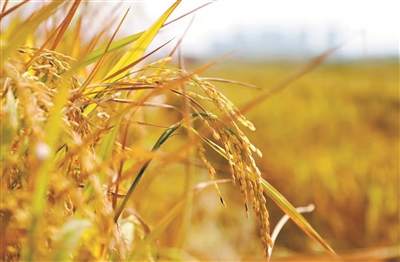 在调研现场,一片片稻田在阳光下泛着金光,层层叠叠的稻穗颗粒饱满、长势喜人,放眼望去满目金黄。微风吹过翻起层层稻浪,空气中更弥漫着阵阵清香。收割机在金色稻田中来回穿梭,收割、脱粒等环节均有序进行。运粮车早就在一旁准备就绪,随时将收获的粮食颗粒归仓。