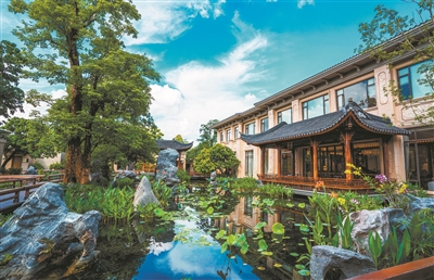 在业内,星河湾有着“豪宅专家”的美誉,而小桥流水、亭台水榭的中式园林更称得上是其“王牌”。在萝峰项目,星河湾汲取中式园林的精华,于近万平方米的荷塘之上打造了“一岛一栋、三重水系”的精妙设计。每一栋楼就是单独的一个“岛”,由护城河、组团水系相隔,再搭配廊轩点缀,踏着绿水繁花的归家动线,有着曲径通幽的诗情画意。细节更是品质感满满,园林的亭台廊轩选择了有着多年树龄的菠萝格木制成,集齐了桂花、冬青、秋枫、荔枝等树种造景,人文气息浓郁。