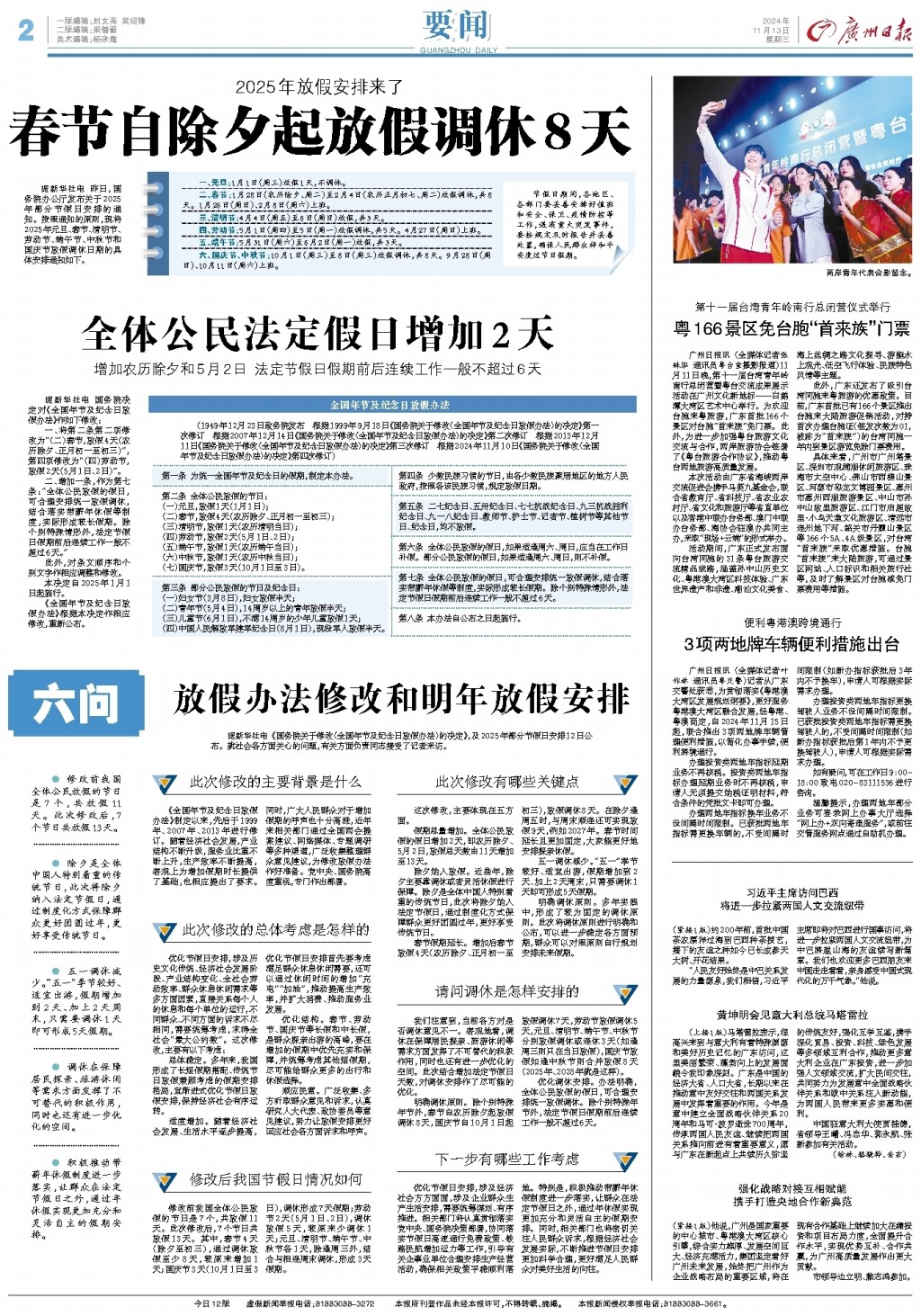全体公民法定假日增加2天