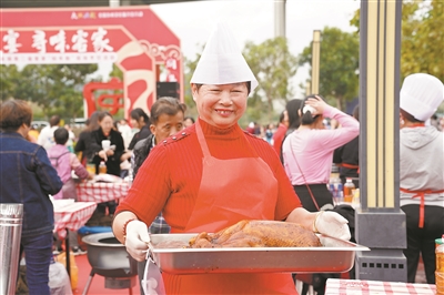 现场同时烹饪100只焖鹅,并与其他地道客家菜共同组成“百鹅宴”,供市民游客品尝,引得当地市民与外来游客纷至沓来。