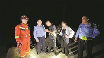 “这山险峻,落差大,山头多,大家注意安全。”民警提醒救援人员注意脚下安全,同时通过呼喊和闪烁照明灯,全力搜寻被困二人。