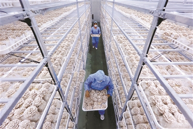 务工人员在毕节市农投菌业科技有限公司白参菌生产车间忙碌。