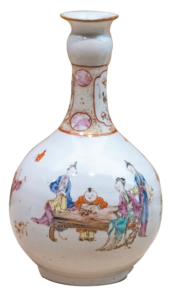 清咸丰广彩花鸟人物故事图案镶铜座灯