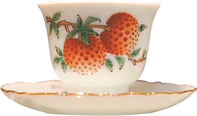 传统广彩多以人物、岭南瓜果、花鸟蝶虫等为纹饰、题材,比如瓷盘上多见的“瓜果边”,用寿桃、佛手、石榴等有美好寓意的岭南瓜果点缀,还有常见的“散花雀”图样,将花朵、荔枝、石榴、飞鸟、蝴蝶、蜜蜂等散点分布,体现岭南四季如春、瓜果常盛的特色。