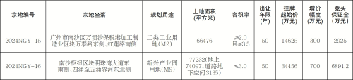 经广州市南沙区人民政府批准,广州市规划和自然资源局南沙区分局公开挂牌出让2宗国有建设用地使用权。