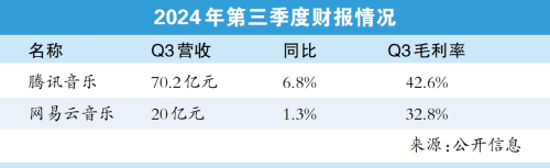 今年第三季度,网易云音乐的净收入为20亿元,同比增加1.3%。毛利率达到32.8%,较上一季度的32.1%和上年同期的27.2%有所增长,网易云音乐称主要得益于会员订阅收入的增加和成本管控的持续改善。