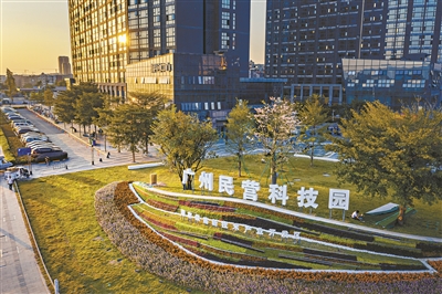 广州市白云区是全市民营经济的又一大“重镇”,全国首个全国工商联民营企业科技创新示范基地——广州民营科技园(以下简称广州民科园)就坐落于此。近三年来,广州民营科技园围绕空间优化、产业集聚、科技创新、营商环境四个改革方向,推出14条改革创新举措,引领园区营业收入增长4倍。