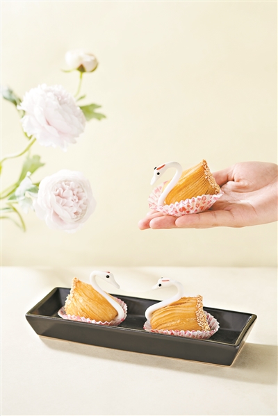2014年,我加入了陶陶居。为了研发好出品,我和团队经常去香港、澳门等地学习,每到一个城市都会找到新灵感。陶陶居最受欢迎的爆款点心是卡珍芝士糯米鸡,从开店之初至今都是桌桌必点。传统的糯米鸡如何让年轻人喜爱?在当时我们希望通过创新,让新一代年轻消费者喜欢上点心,所以结合当时年轻人喜爱的芝士、卡珍酱,研发出卡珍芝士糯米鸡。陶陶居另一款热卖点心的天鹅酥,也是在传统榴莲酥的基础上,结合了象形点心和西式糕点的翻糖,把榴莲酥做成可爱的天鹅造型。自2015年陶陶居推出天鹅榴莲酥之后,各大茶楼酒家都相继研发出了黑天鹅等其他造型的榴莲酥,再到后来研发出了酥皮水牛奶菠萝包。现在,我们仍愿意把心思用在做好一款点心上。
