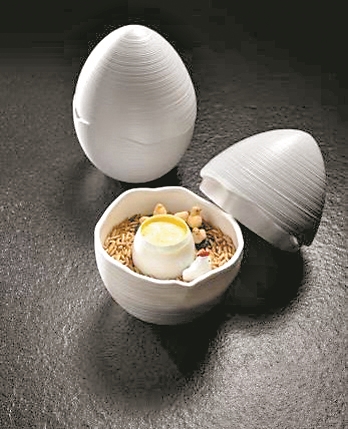 在琶洲一家创意粤菜餐厅里,厨师将“蒸水蛋”端上餐桌时,所有人都以为这只是一道再普通不过的老广家常菜。可是,当吃完表面的蛋羹,再往下深挖一勺品尝时,惊喜却出现了,这莫不是经典粤味“香芋扣肉”吗?原来,这位年轻的粤菜师傅巧妙地将香芋扣肉制成蓉状,埋于底部,风味是传统粤味,却避开了油腻的缺点,创造出绵密浓郁、滑而不腻的质感。